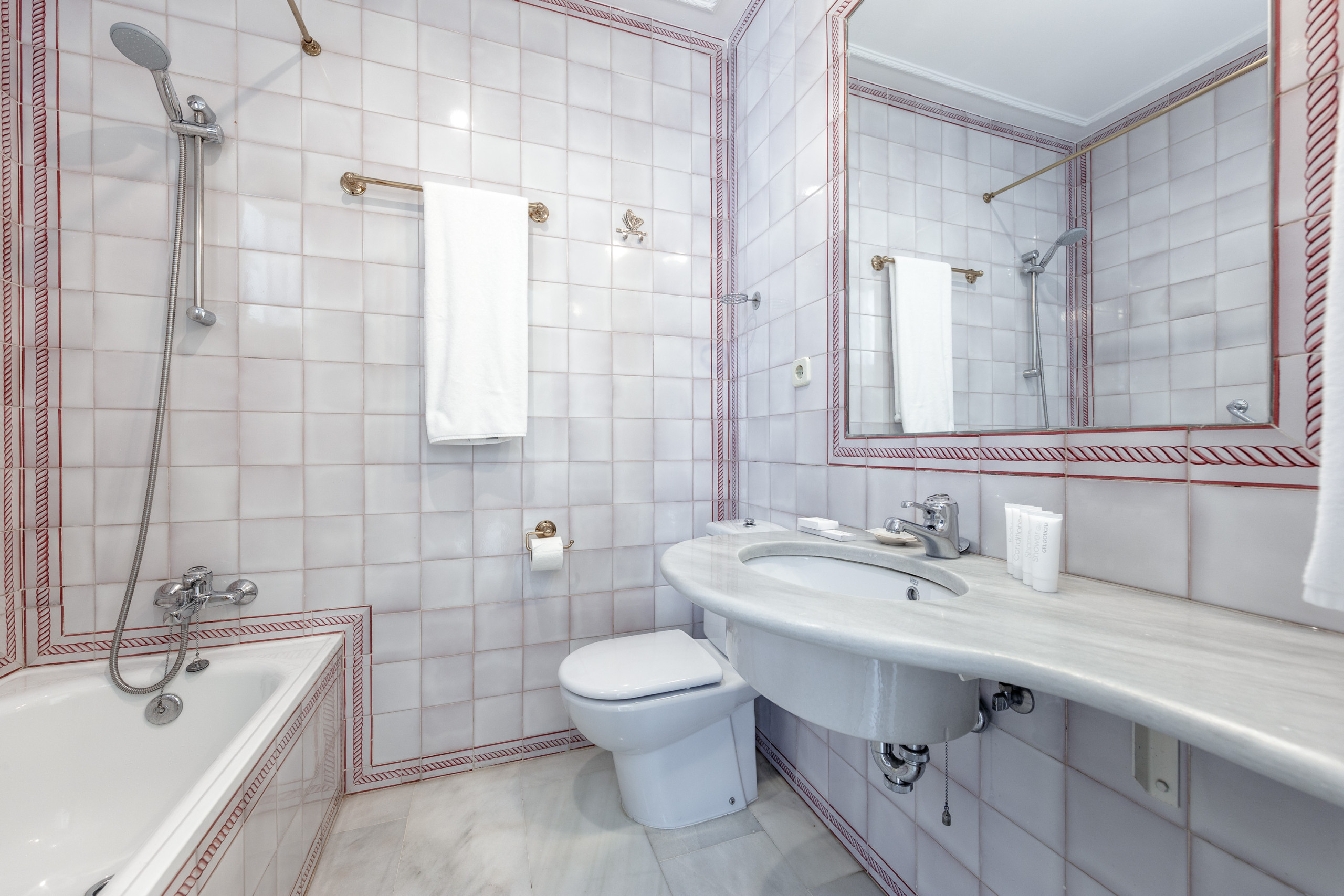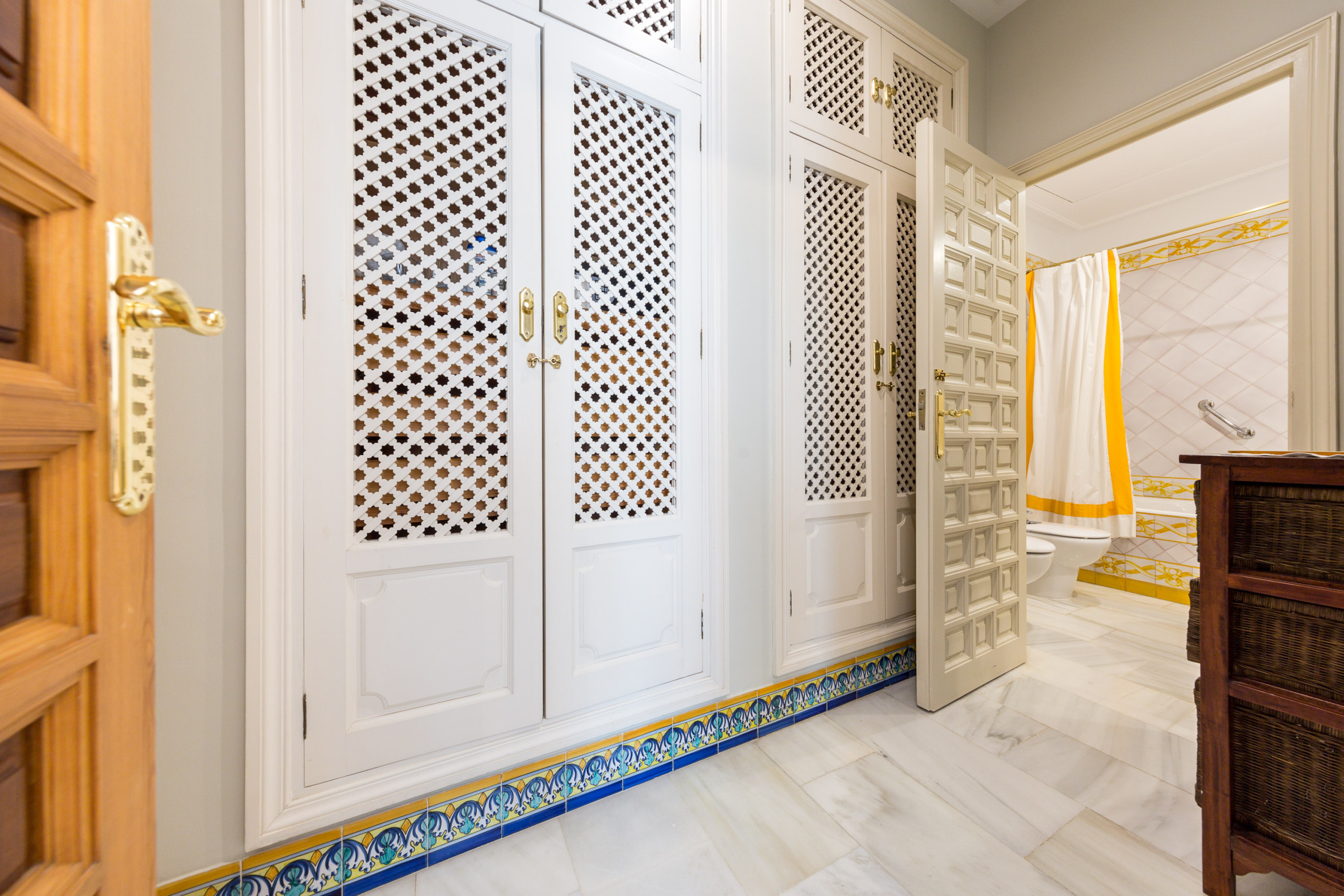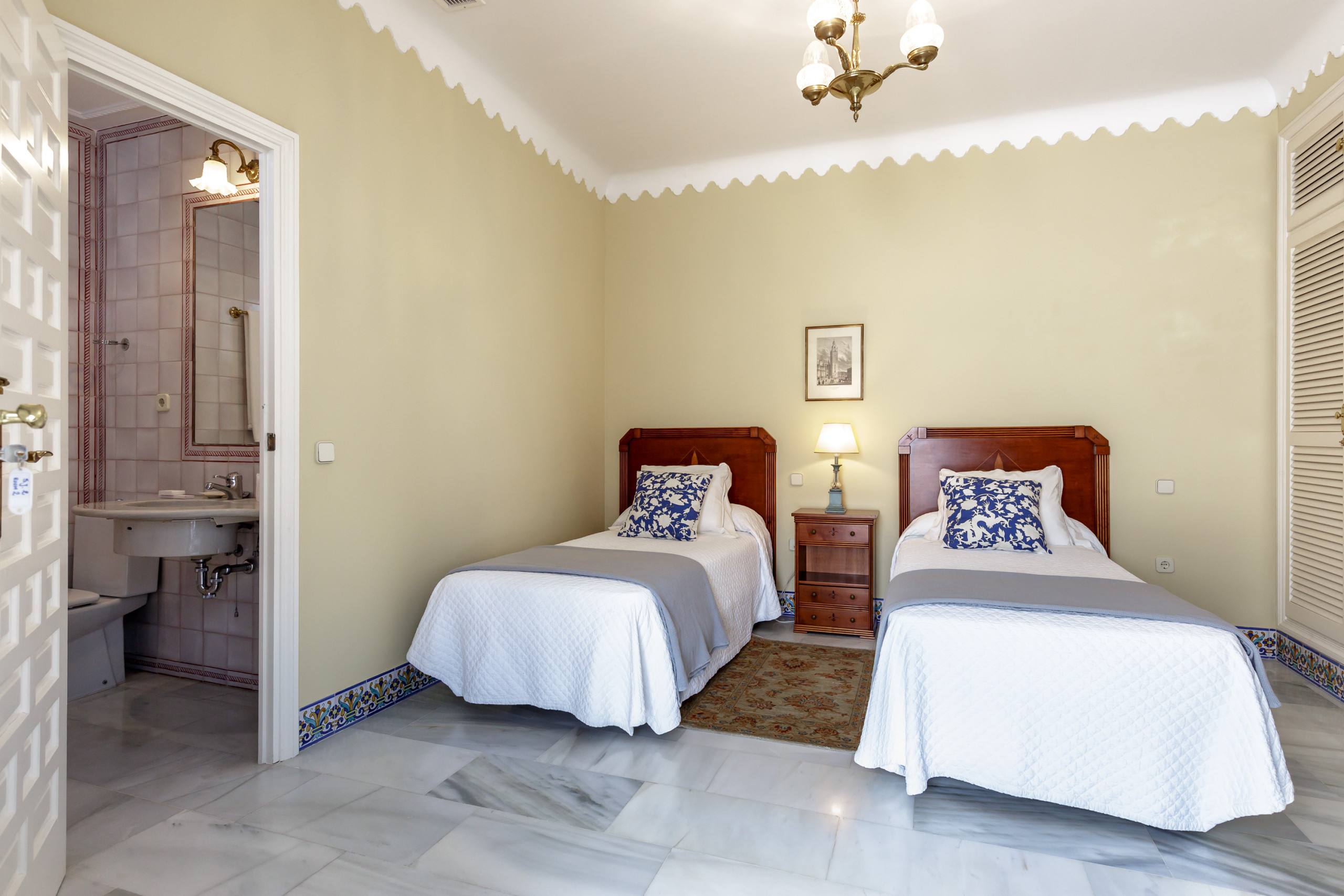 Los baños conservan piezas tradicionales, azulejería clásica y detalles artesanales.