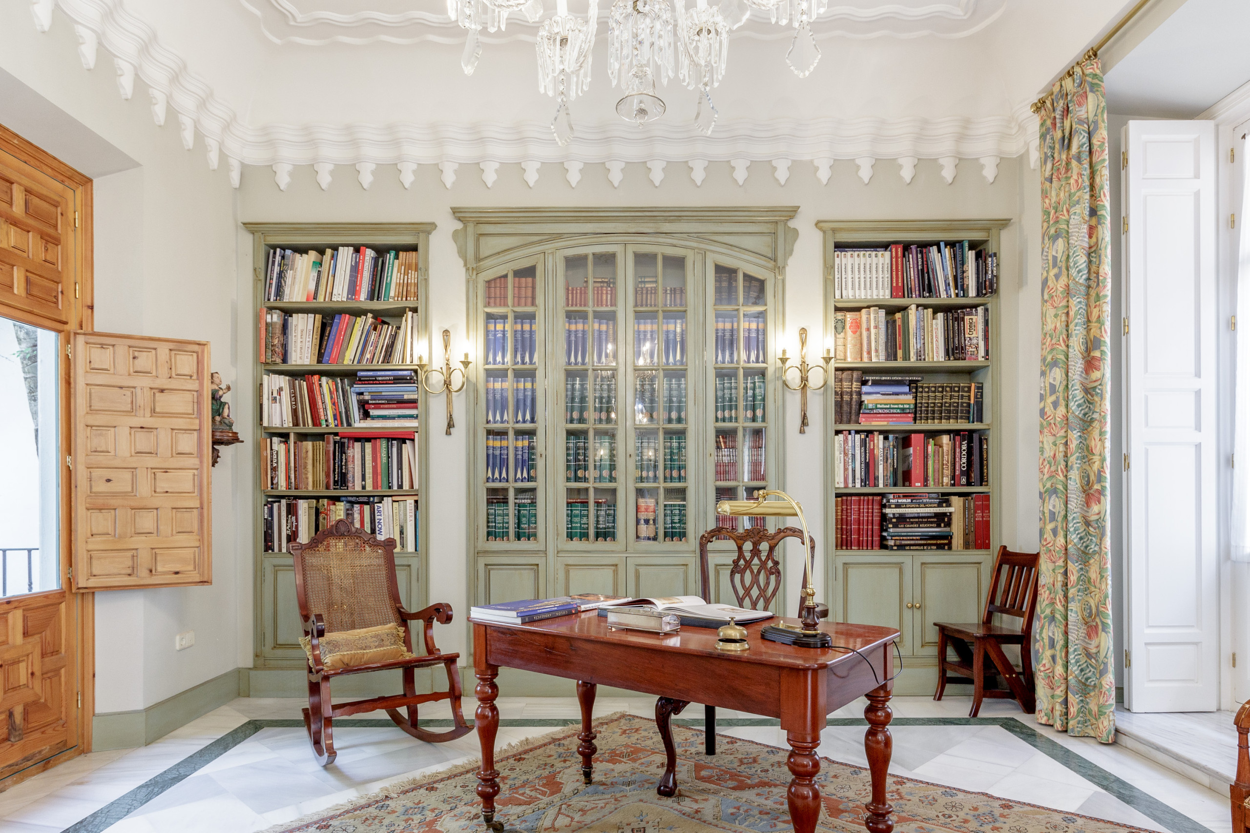 • Large living room-library, the jewel of the apartment, with three balconies overlooking the street and natural light throughout the day: the best imaginable box seat to watch Holy Week