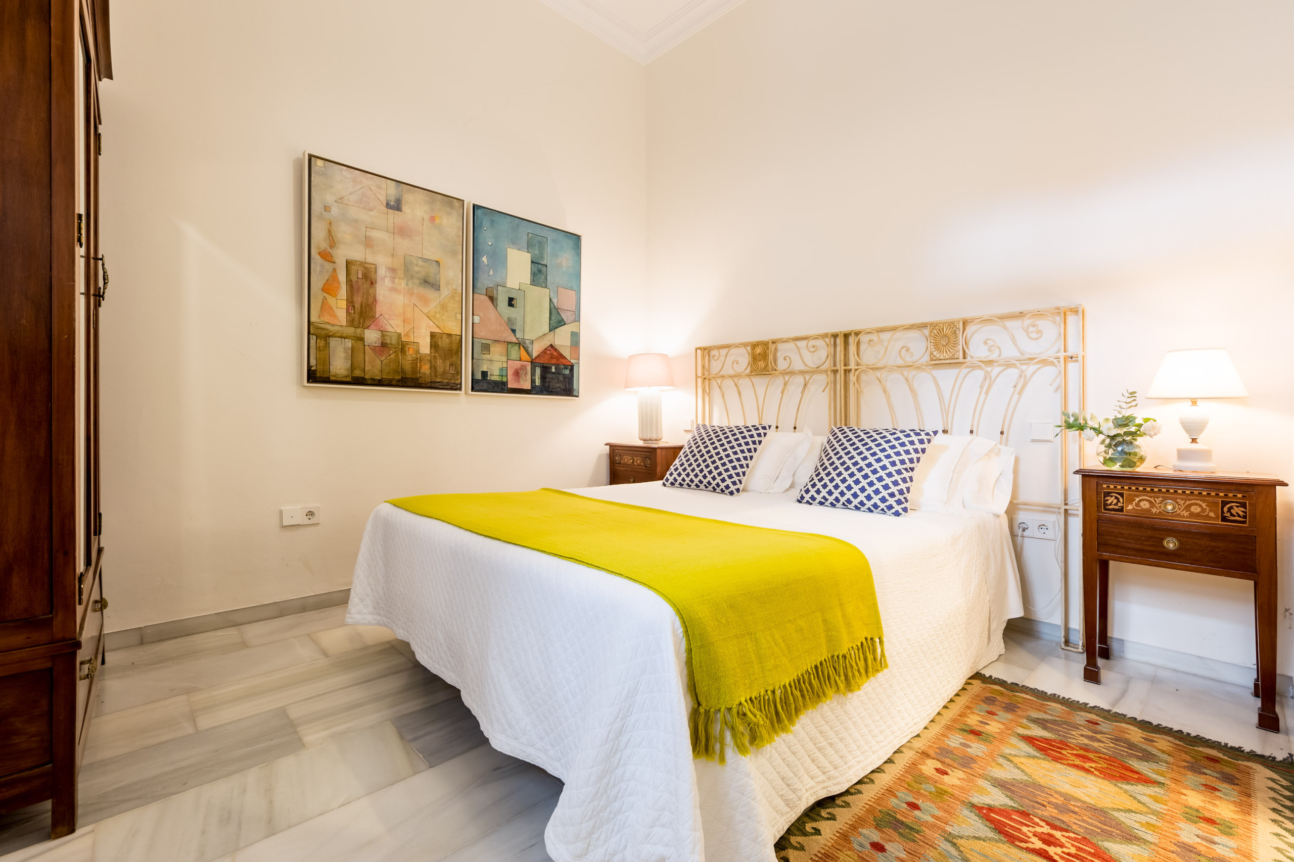 San José II is part of the five apartments of the palace complex and pays tribute to the Sevillian cabinetmaker Francisco de Paula Farfán, born in this same house in 1869 and whose artisan legacy remains present in the rehabilitation.